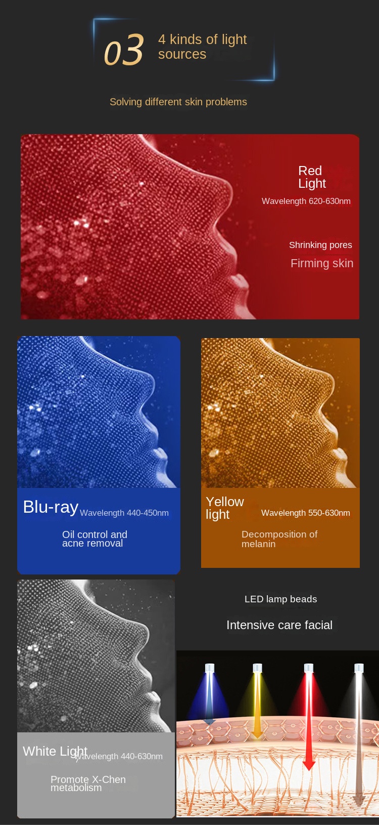 Specification: M01+M05 Face & Neck LED Combo (White), M01+M05 Face & Neck LED Combo (Black), M01+M05 Face & Neck Infrared Combo (Black), M01+M05 Red & Infrared Face & Neck Combo (White), M01-LED Version (Black), M01-LED Version (White), M01-Infrared Version Mask (Black), M01 Infrared Photon Mask (White), M05 LED Neck Beauty Device, M05 Infrared Neck Beauty Device, M02 Infrared Photon Lip Beauty Device