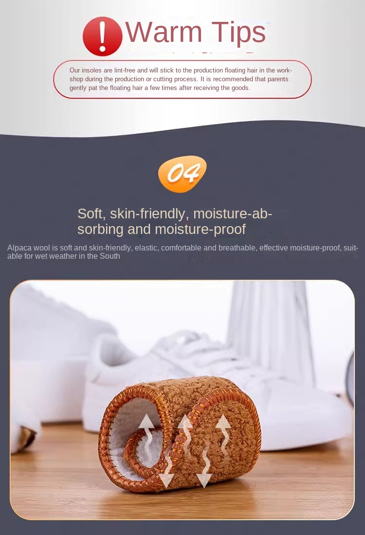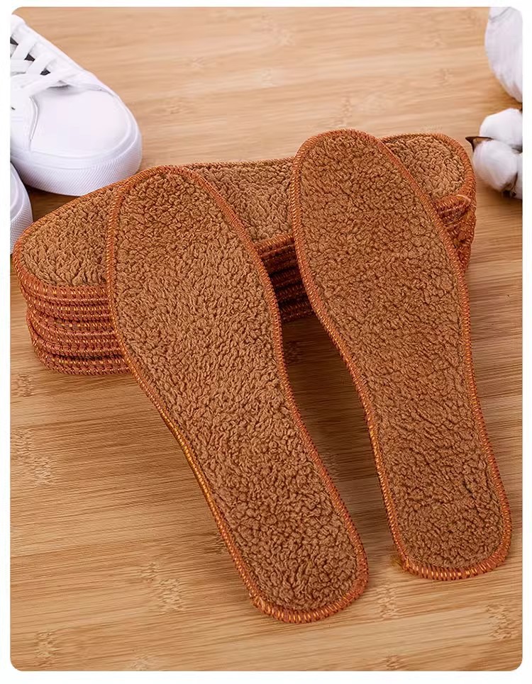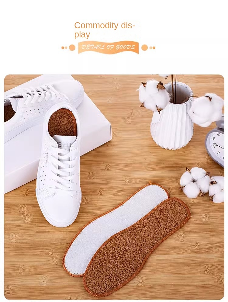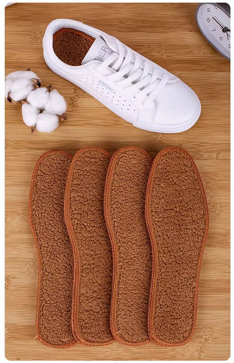 1 pair Thick Alpaca Wool Insoles Winter Warm Anti-Cold Breathable Moisture-Absorbing Cotton Felt Insoles Comfortable and Soft