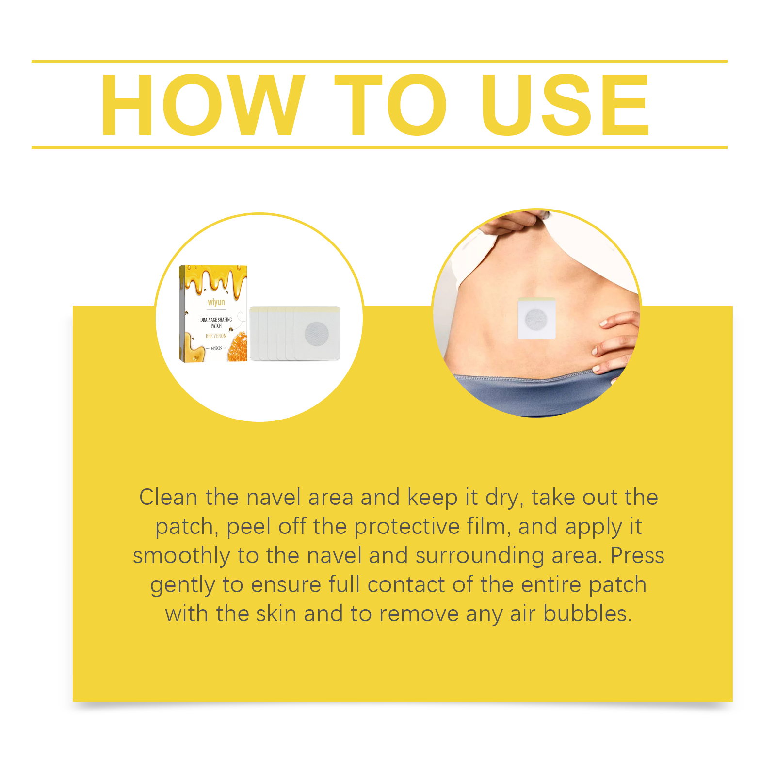 Our body care strips contain peppermint extract and ginger extract. It protects the skin and enhances its elasticity. Its application is simple: clean the belly button area and keep it dry, remove the patch, peel off the protective film, and apply it smoothly to the belly button and surrounding area with gentle pressure to ensure that the entire patch is in full contact with the skin and remove any air bubbles. It can also relieve muscle tension and increase relaxation.